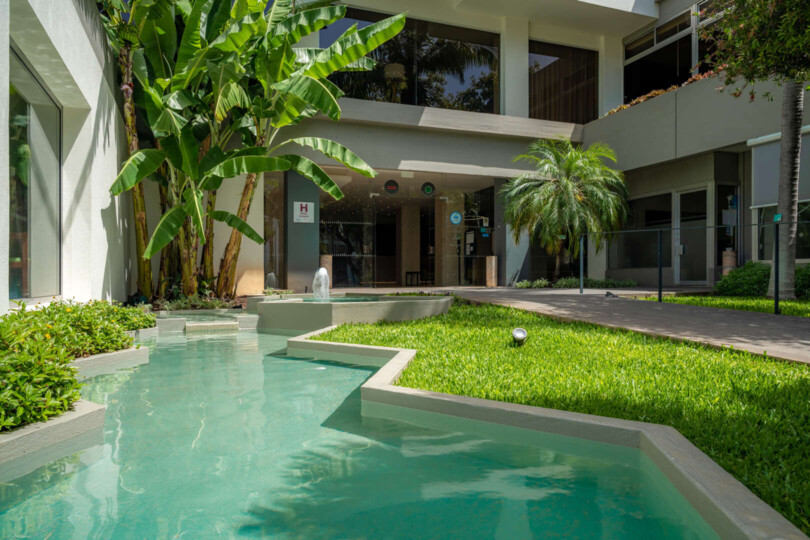 The resort is located in the Lido area of ​​Funchal. The hotel grounds include three swimming pools surrounded by sun loungers, umbrellas and a Jacuzzi. Guests can relax in the spa with saunas, a hammam and deep tissue massages, and keep fit in the fitness centre. The restaurant serves a buffet breakfast and dinner with Portuguese and international dishes, and there are bars for snacks and drinks. The Girassol Suite Hotel has been awarded the prestigious Green Key certification, an award that highlights its commitment to sustainable and responsible environmental practices. This certification represents a commitment to providing a high-quality hotel experience that minimises its impact on the environment.