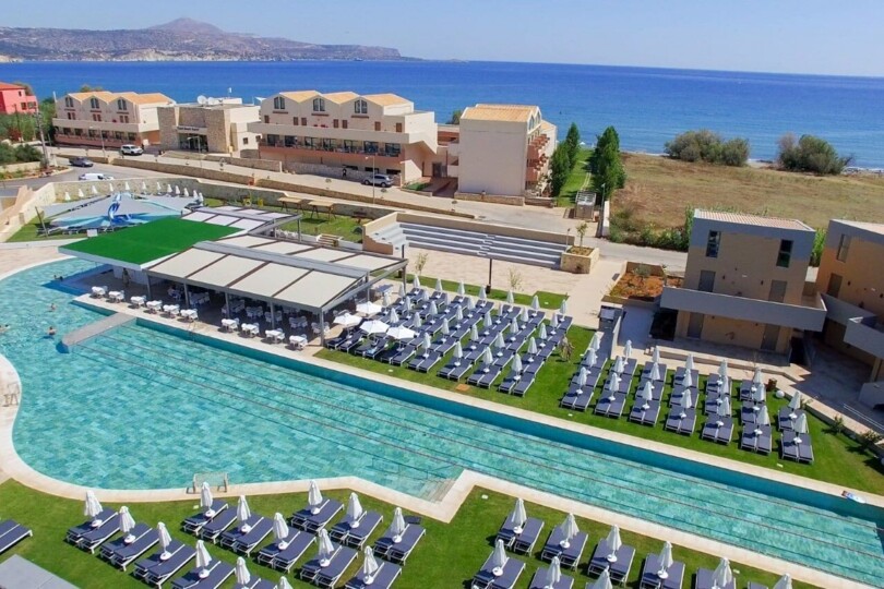 The hotel is located near the village of Kalives, near the beach. It offers magnificent views of the sea and mountains, and its convenient location allows guests to visit the neighboring towns with shops, taverns, restaurants and other tourist attractions. For a comfortable stay, the hotel offers modern rooms with all necessary amenities. There are several restaurants and bars on site, serving dishes of different cuisines of the world, including traditional Greek. Other services include swimming pools for adults and children, a gym, a spa center, a kids' club and a playground. Guests can also enjoy various outdoor activities, such as tennis, beach volleyball, table tennis, etc. The hotel offers animation programs for all ages. Suitable for active tourists, couples and families with children.
