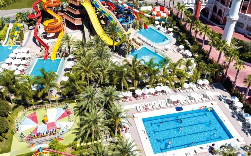 Отель расположен на берегу моря в Эвренсеки, примерно в 5 км от центра города Сиде. Небольшая красивая территория, развитая спортивная инфраструктура, несколько ресторанов, баров и бассейнов для взрослых и детей, водные горки. Обширный песчаный пляж, приветливый персонал и качественная еда, круглосуточная система питания «ультра все включено». Номера в восточном стиле, бесплатный Wi-Fi и роскошный спа-салон. Рекомендуется для всех категорий туристов.